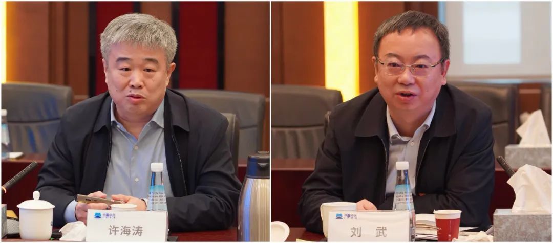 李海欣、总经理许海涛与中机国际党委书记 董事长陈蕃、党委副书记 总经理刘武四位领导围绕本次理论学习主要内容,就如何正确理解坚持守正创新、坚持用科学方法指导和推进改革等工作思考作重点发言。
