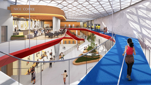 室内设计方面,方案将开放性、生态性与文化融合为主导理念,设置集约化运动场、串联型休闲跑道与有活力的商业空间,意在将体育中心打造成全民共享的城市活力空间。交通组织明确高效,地上与地下共设近600个机动车停车位,充分满足日常需求。